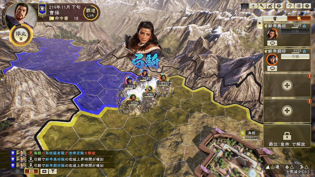 Once players form strong relations with, or successfully conquer the tribe, an Outlander Officer will join their forces. These extremely powerful officers utilize the “Siyi” formation to gain the upper hand in mountainous areas or forests. In fact, each tribe has a unique trait assigned to them — Qiang officers can activate “Bow Cavalry”, while Xianbei officers are equipped with “War Chariot”. Strategically recruiting Outlander Officers with desired traits will be pivotal in unifying China, while ensuring the officer’s conditions are favourable will ensure they do not leave the ally forces, as these units can easily turn on the player’s forces if their relationship changes for the worst.