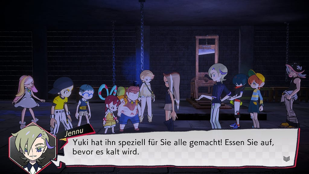 Der Grafikstil von World’s End Club sicher gewöhnungsbedürftig, sieht aber doch ganz schön aus. Allerdings fiel es mir hin und wieder schwer, diese morbiden Themen, die im Laufe des Spiels immer wieder angeschnitten werden, mit dem Artstyle richtig zu „fühlen“. Dafür ist die gesamte Aufmachung dann doch zu kindlich und bleibt es auch, obwohl man hier sicher mit dem Stil hätte spielen können. Ich hätte mir eventuell einen Switch gewünscht, an dem der Stil düsterer wird und diese kindliche Erscheinung immer weiter in den Hintergrund gedrängt wird, da der Inhalt des Spiels diesen Wechsel auf jeden Fall hätte tragen können.