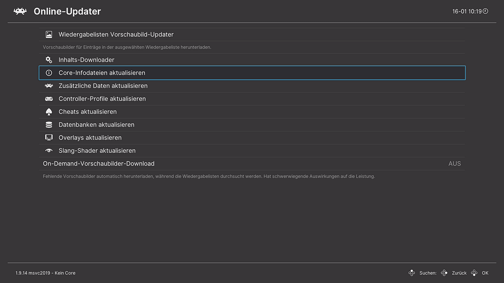 Nun könnt ihr euch wieder an die Xbox setzen und Retroarch starten.